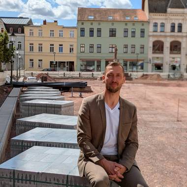 Oberbürgermeister Bastian Sieler informiert über die Baumaßnahmen am Sperlingsberg