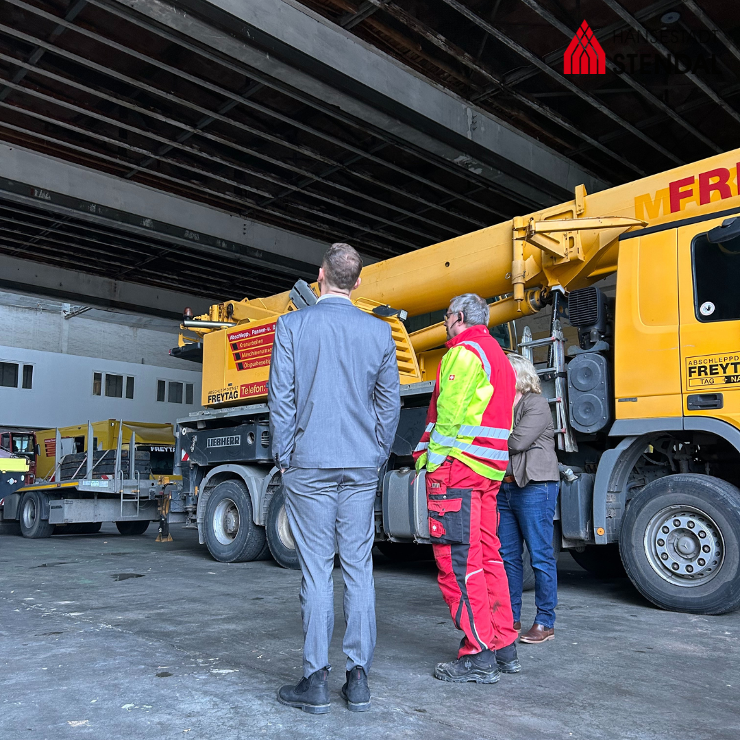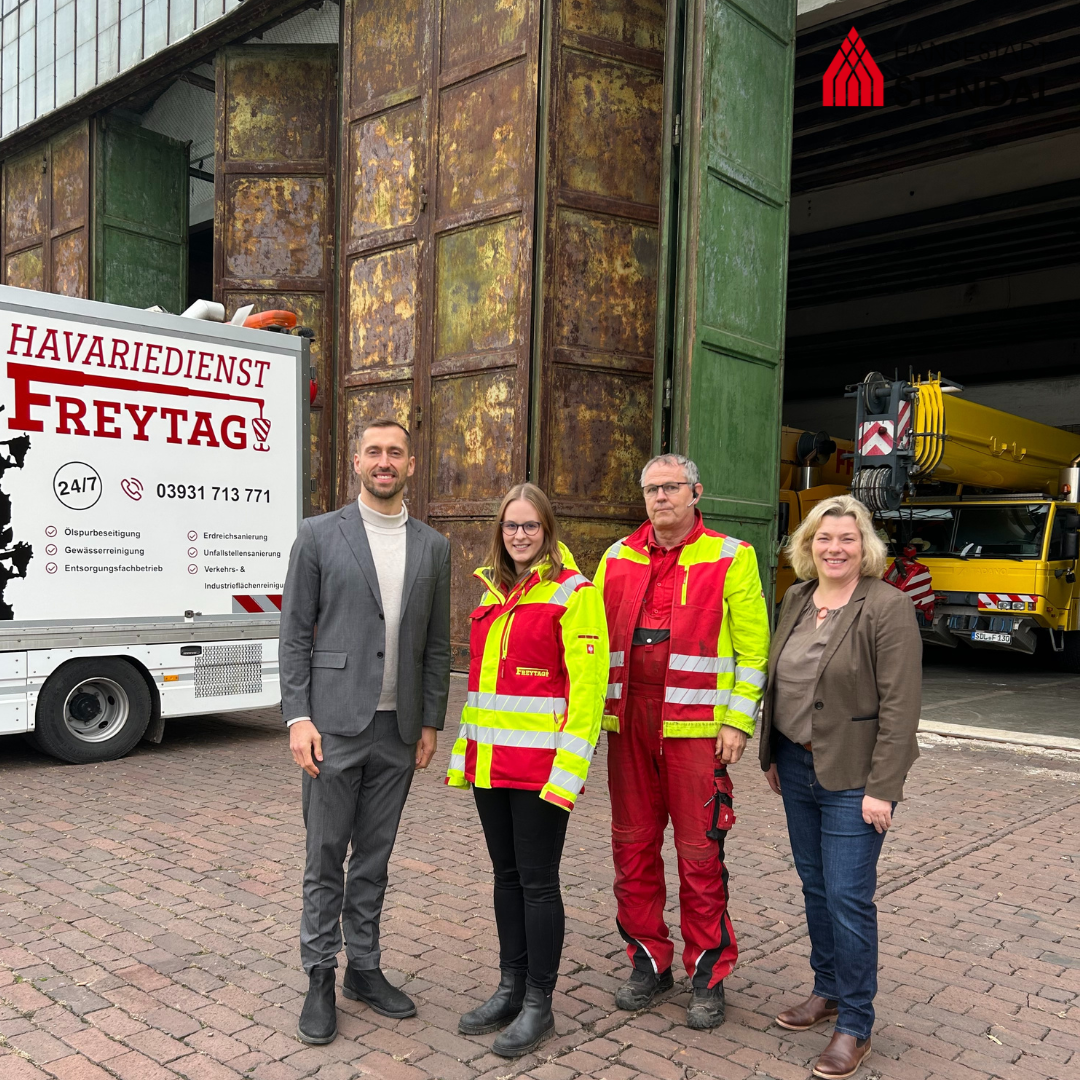 Oberbürgermeister Bastian Sieler besuchte kürzlich mit der Wirtschaftsförderin der Hansestadt Stendal, Sandra Slusarek, den Abschleppdienst Freytag am neuen Firmensitz am Flugplatz Stendal-Borstel. Anlass war das 35. Firmenjubiläum des in der Region fest verwurzelten Unternehmens. Der Oberbürgermeister informierte sich über die aktuelle Geschäftslage, geplante Erweiterungen und die besonderen Herausforderungen in der Branche.