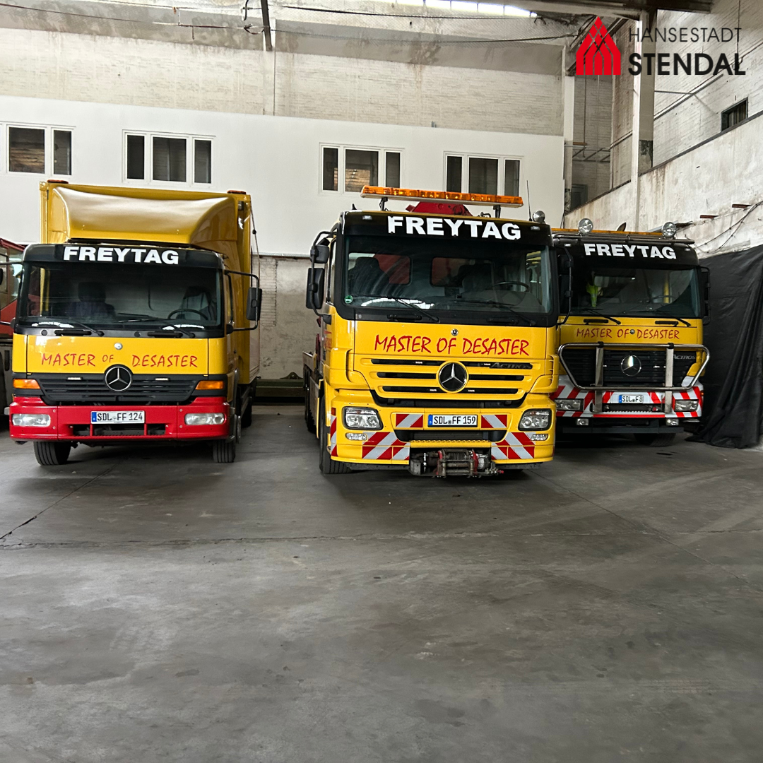 Der neue Standort des Abschleppdienstes Freytag birgt eine besondere Geschichte: Das Gelände gehörte früher zur Anlage des Flugplatzes. Herzstück ist ein beeindruckender Hangar aus dem Jahr 1937 mit einer Fläche von 2.000 m², der einst als Fahrzeug- und Flugzeughalle diente. Nach langem Leerstand wurde das Areal von der Familie Freytag übernommen und bietet heute dank des weitläufigen Geländes und des großen Hangars optimale Bedingungen für den modernen Abschlepp- und Bergedienst. Die geografische Lage in Stendal, insbesondere durch die zukünftige Anbindung an die neue Autobahn, wird als optimal für die schnelle Erreichbarkeit des Einsatzgebietes bewertet.