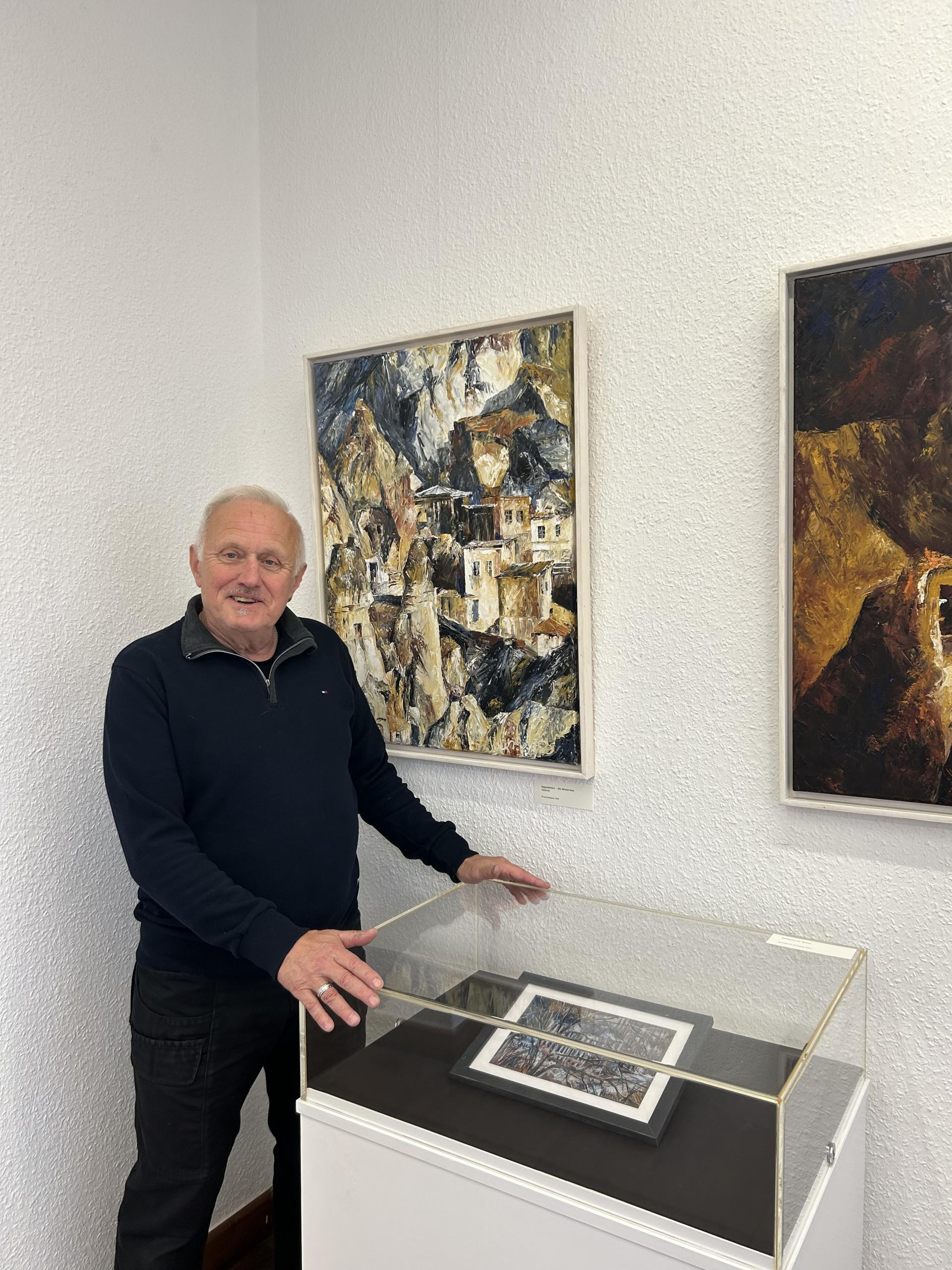 Im Ausstellungsraum empfängt die Besucher*innen der Blick aus dem und auf das Atelier. Auf die altmärkischen Landschaften folgen Impressionen von Reisen in die Türkei und Griechenland. Trotz der intensiven und grundsätzlich optimistischen Farbigkeit bleiben Werners Werke fern jeder Gefälligkeit – sie berühren auch die ernsten Themen des Lebens. Mit längerer Betrachtung kommen Titel und Tiefgang zur Geltung, wie zum Beispiel im Werk „Der lange Weg der Zeit“.