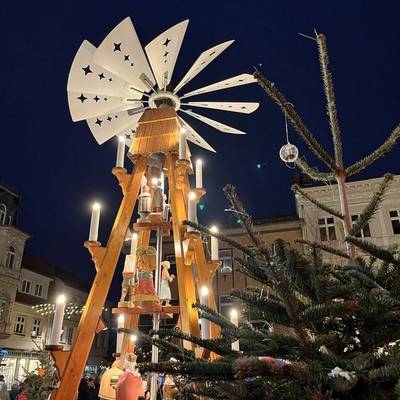 In diesem Jahr findet der Weihnachtsmarkt vom 11. - 14. Dezember 2025 statt. Genießen Sie die stimmungsvolle Atmosphäre, den festlich beleuchteten Marktplatz mit der riesigen Tanne und den Duft von gebrannten Mandeln, Glühwein und Punsch.