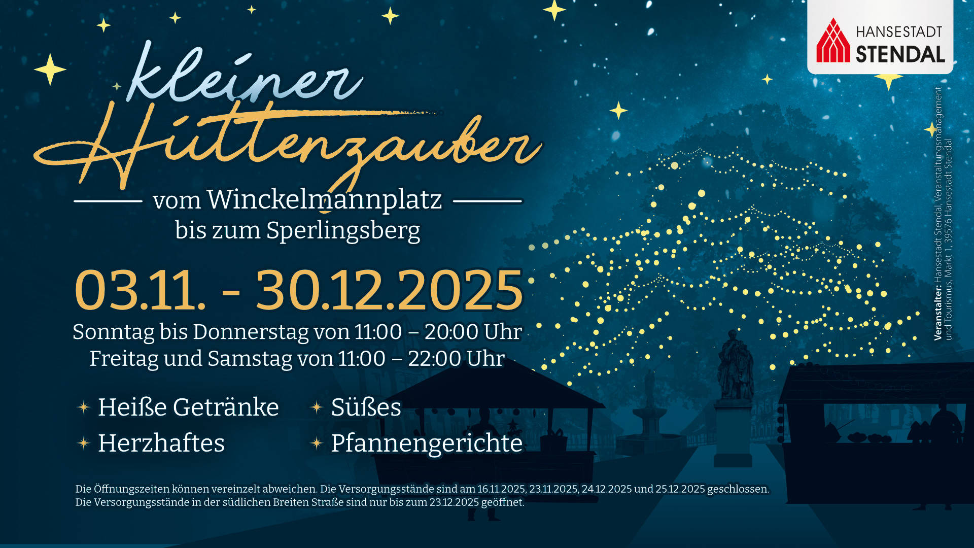 Der kleine Stendaler Hüttenzauber lädt auch in diesem Jahr zum Verweilen, Schlemmen und Genießen ein!