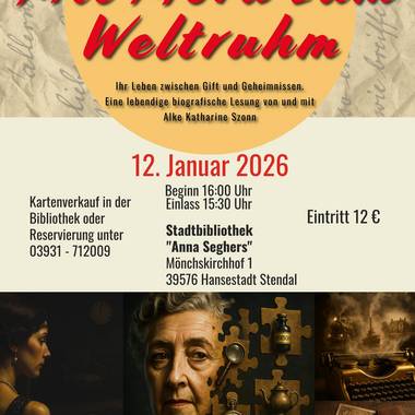 Entdecken Sie die aktuellen Veranstaltungen der Stadtbibliothek Stendal – von Lesungen und Workshops bis zu spannenden Angeboten für Kinder und Familien.